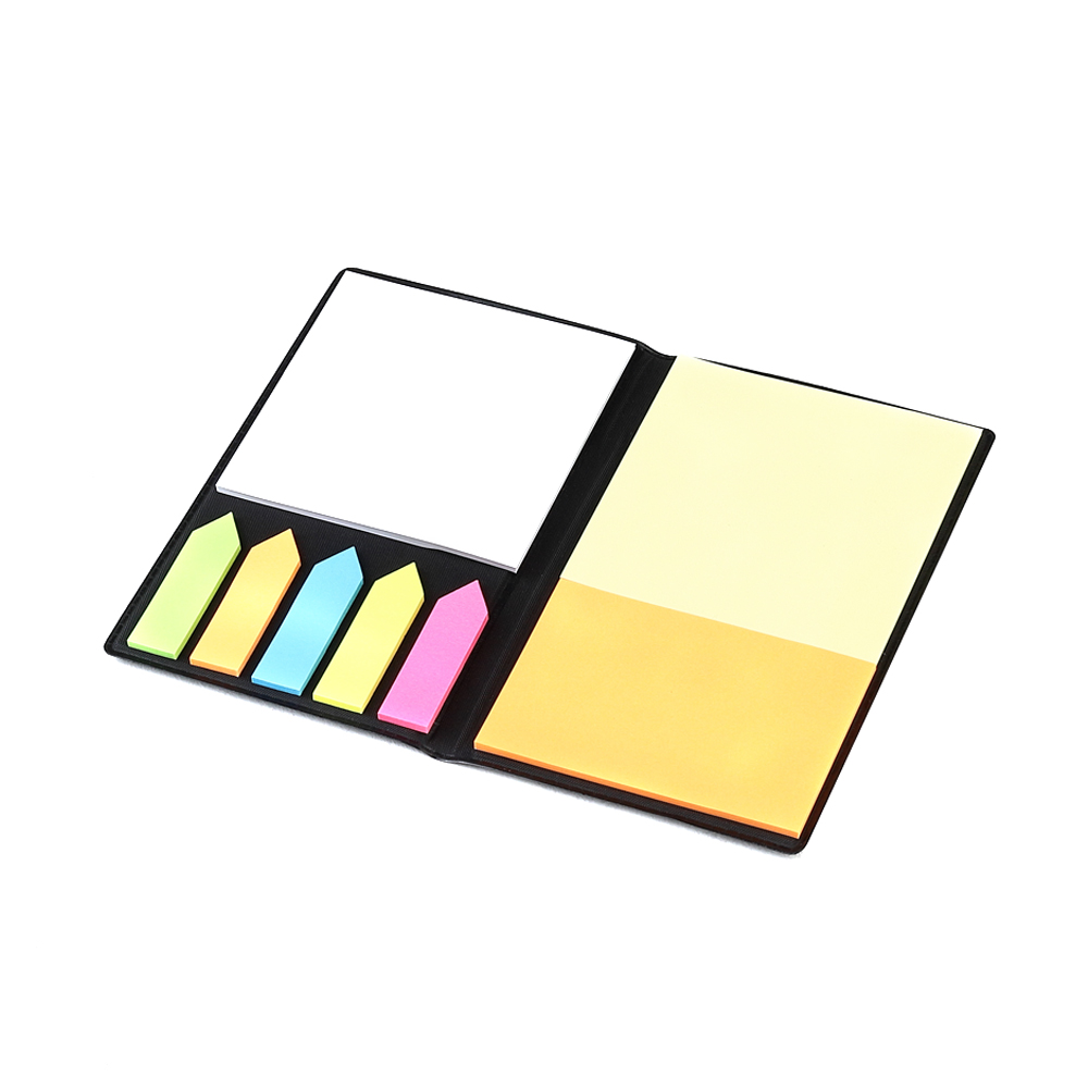 Стильный рабочий канцелярский аксессуар Taler в обложке из экокожи для пометок на документах, в блокноте, для создания записей и напоминаний. Состоит из малых стикеров пяти цветов, средней величины стикера оранжевого цвета и увеличенного стикера желтого цвета, плюс отрывные белые листы, каждый по 20 листов с клейким корешком.