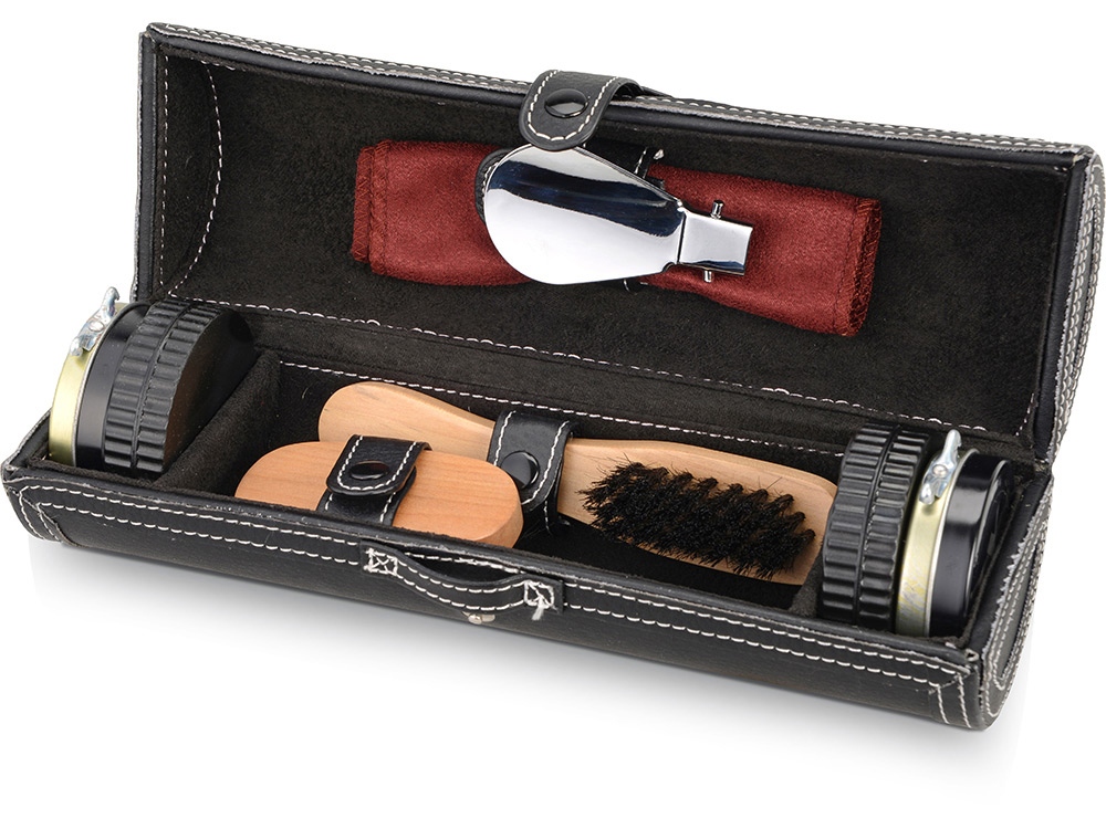 Набор для чистки обуви Сапфир, черный с логотипом компании - отличный способ заявить вашу корпоративную идентичность.
