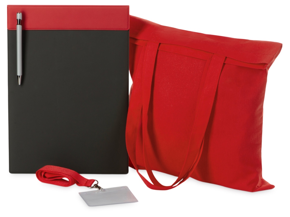 Набор для конференций Conferencier, красный с логотипом компании - отличный способ заявить вашу корпоративную идентичность.