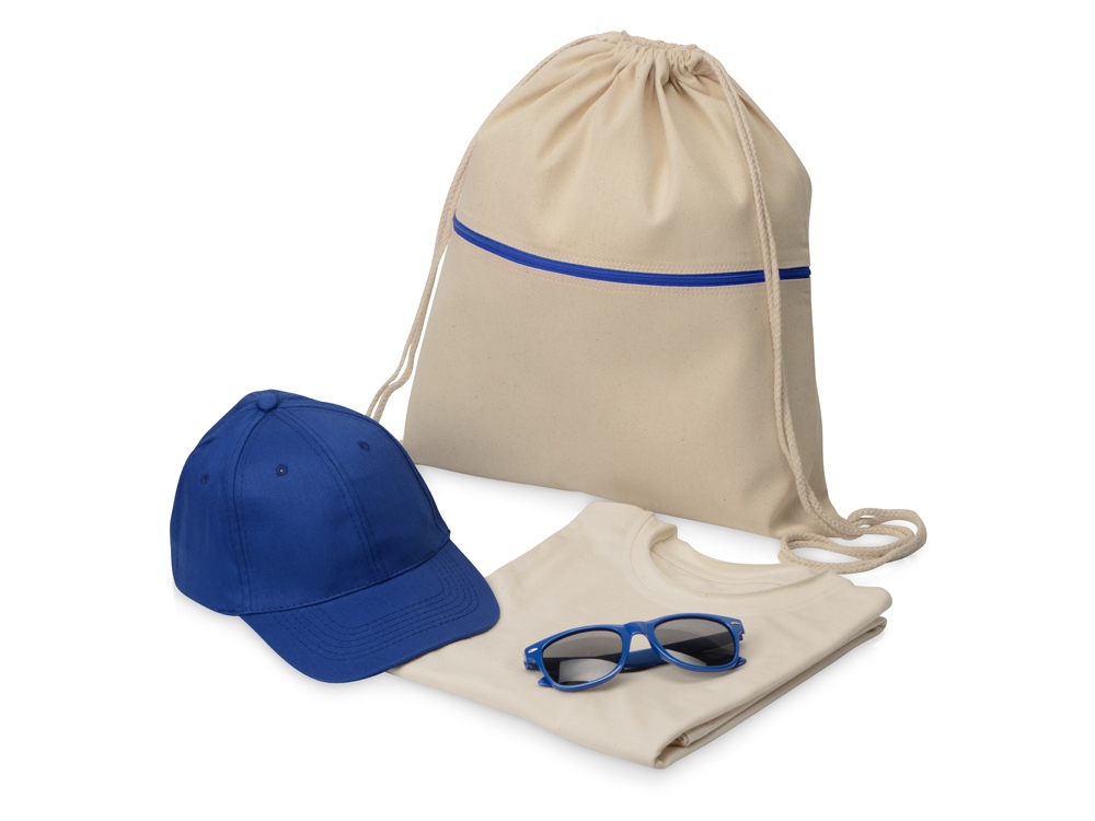 Цвет: рюкзак- натуральный||синий, футболка- натуральный, бейсболка- синий, очки- синий