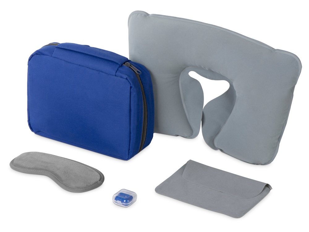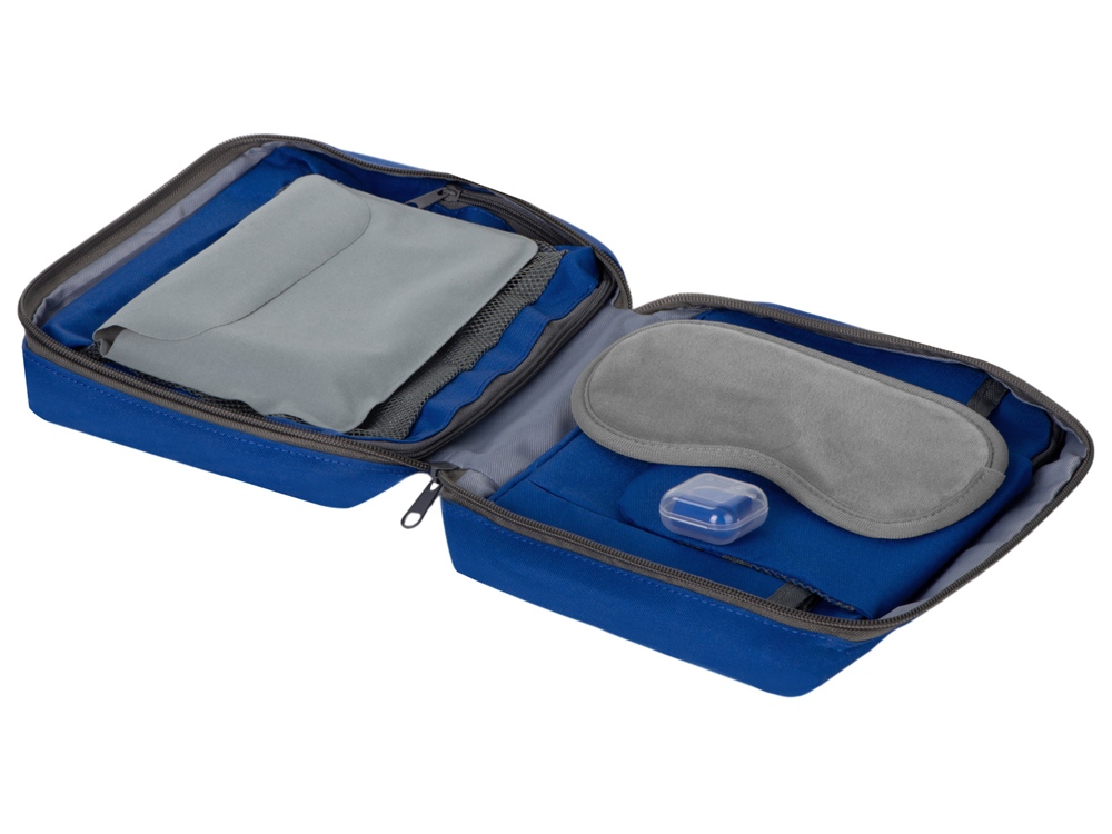 Набор для путешествий Comfy Flight, синий с логотипом компании - отличный способ заявить вашу корпоративную идентичность.