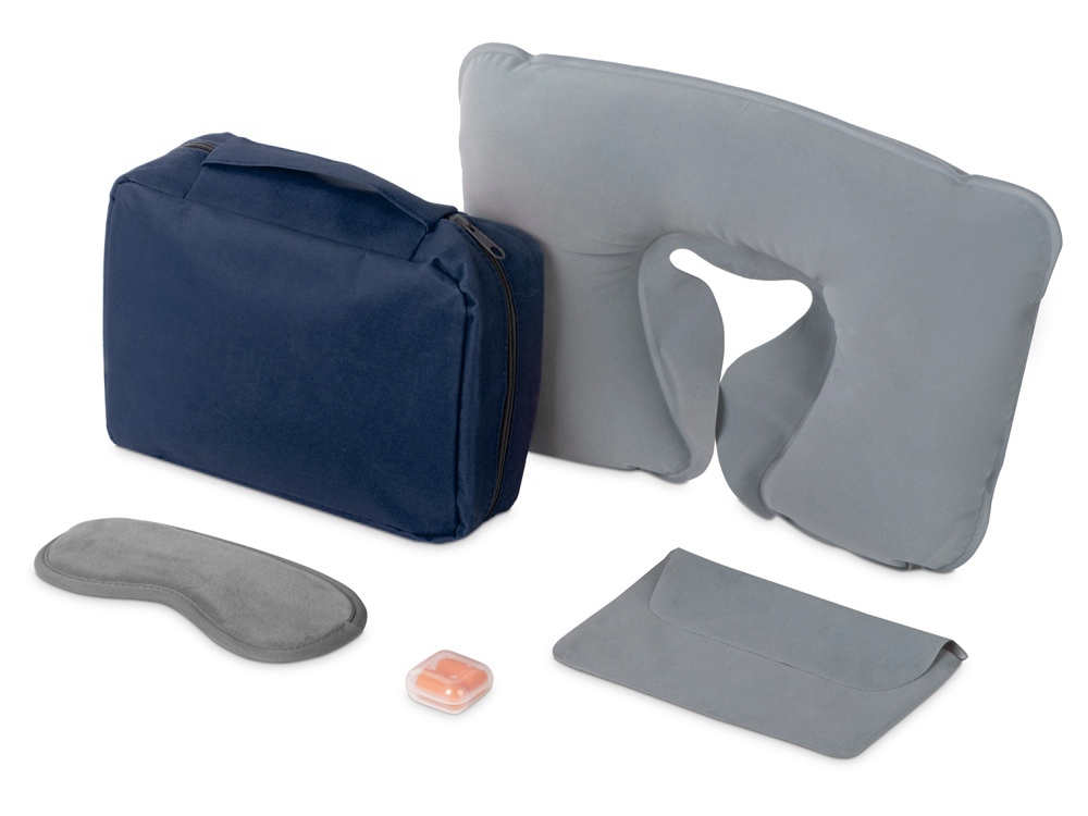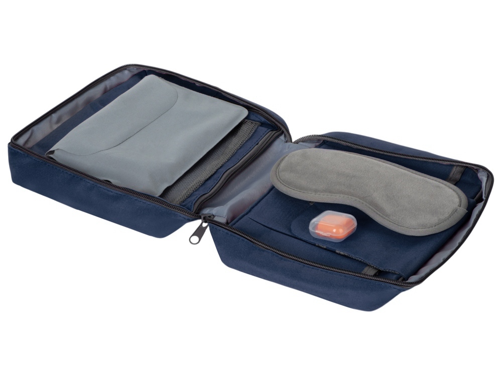 Набор для путешествий Comfy Flight, темно-синий с логотипом компании - отличный способ заявить вашу корпоративную идентичность.