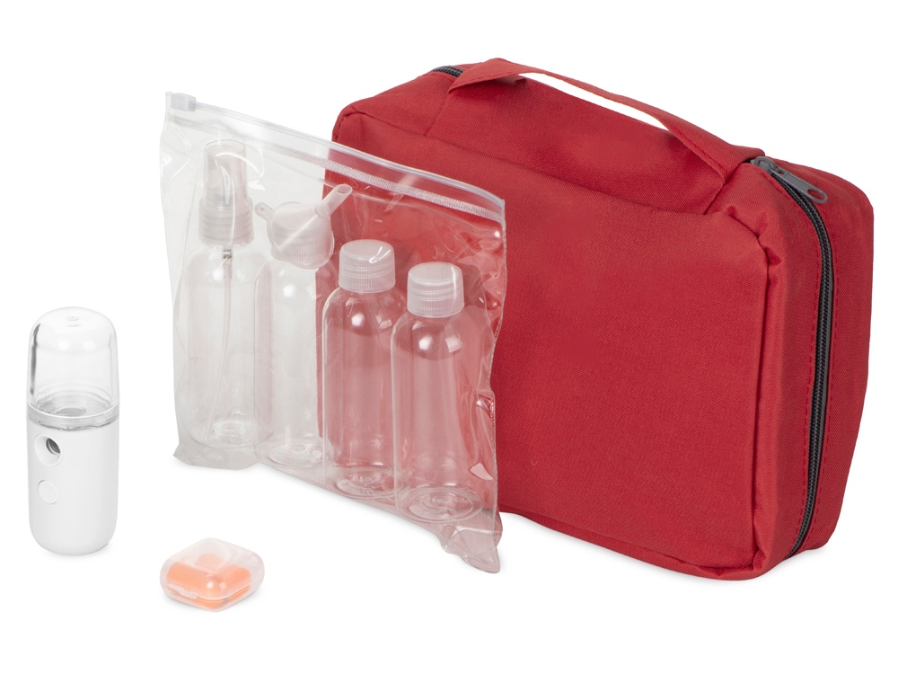 Набор для путешествий Fly away, красный с логотипом компании - отличный способ заявить вашу корпоративную идентичность.