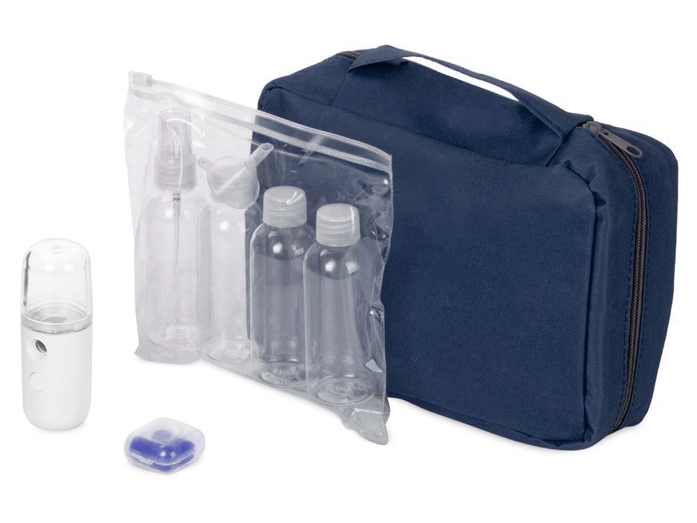 Компания «Эклектика BY» осуществляет нанесение логотипа на сувенирную продукцию: Набор для путешествий Fly away, темно-синий. Арт. 436591