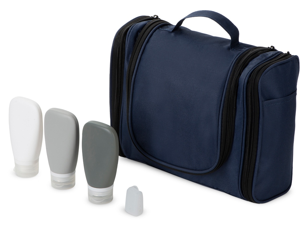 Материал: несессер- полиэстер, несессер- полиэстер, косметичка EVA, емкости- силикон