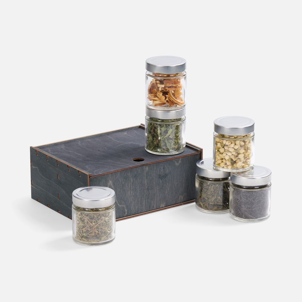 Бутоны жасмина наполняют напиток тонким цветочным ароматом, сушеная мелисса вносит легкую свежесть, чабрец придает пряную нотку, а дольки апельсина — яркую фруктовую кислинку. Смешивая эти ингредиенты на свой вкус, можно стать настоящим чайным мастером, — и каждый раз будет получаться уникальное сочетание, которое отразит текущие предпочтения и настроение. Деревянная коробка?пенал придает подарку благородный и экологичный вид.