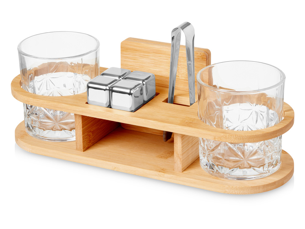 Компания «Эклектика BY» осуществляет нанесение логотипа на сувенирную продукцию: Набор для виски на бамбуковой подставке Boulevardier. Арт. 428196