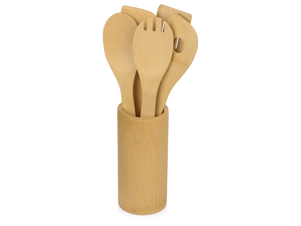 Главная ->Корпоративные подарки и рекламные сувениры на складе -> Товары для кухни -> Кухонные инструменты -> Набор кухонных принадлежностей из бамбука 6в1 Bestie