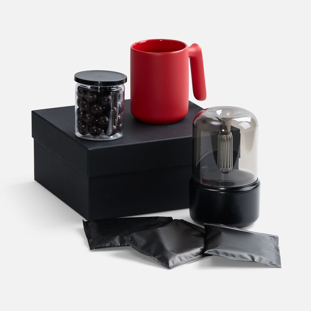 Набор «Микроклимат», черный с красным с логотипом компании - отличный способ заявить вашу корпоративную идентичность.