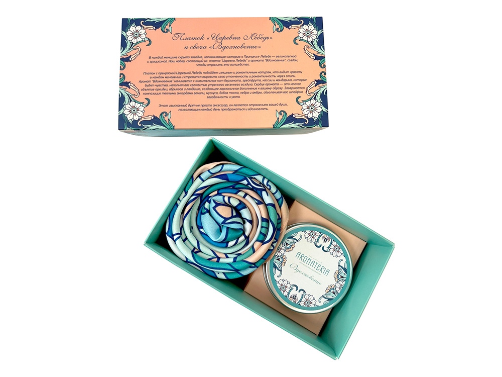 Компания «Эклектика BY» осуществляет нанесение логотипа на сувенирную продукцию: Набор платок Царевна Лебедь и свеча Вдохновение. Арт. 442461