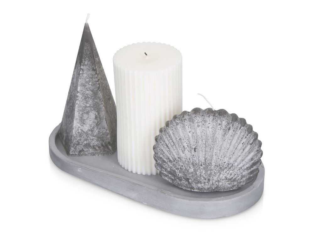 Лаконичная геометрия, сочетающаяся с природным дизайном ракушки, натуральные молочный и неоднородный серый оттенки и подставка из гипсобетона смотрятся естественно, стильно и ненавязчиво.