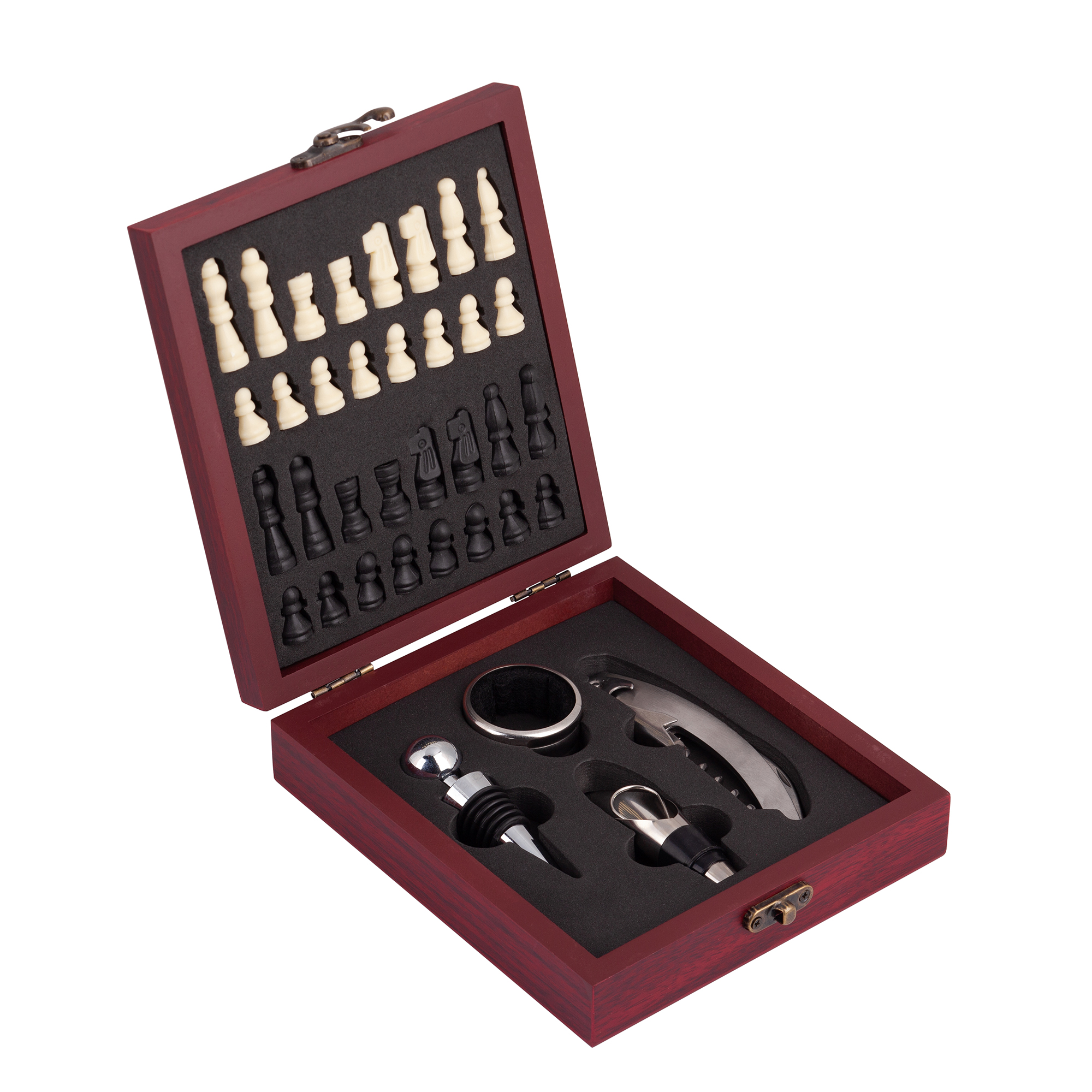 С набором из винных аксессуаров, в котором идут шахматы - вы сможете разнообразить свой досуг, приятно провести время с друзьями.