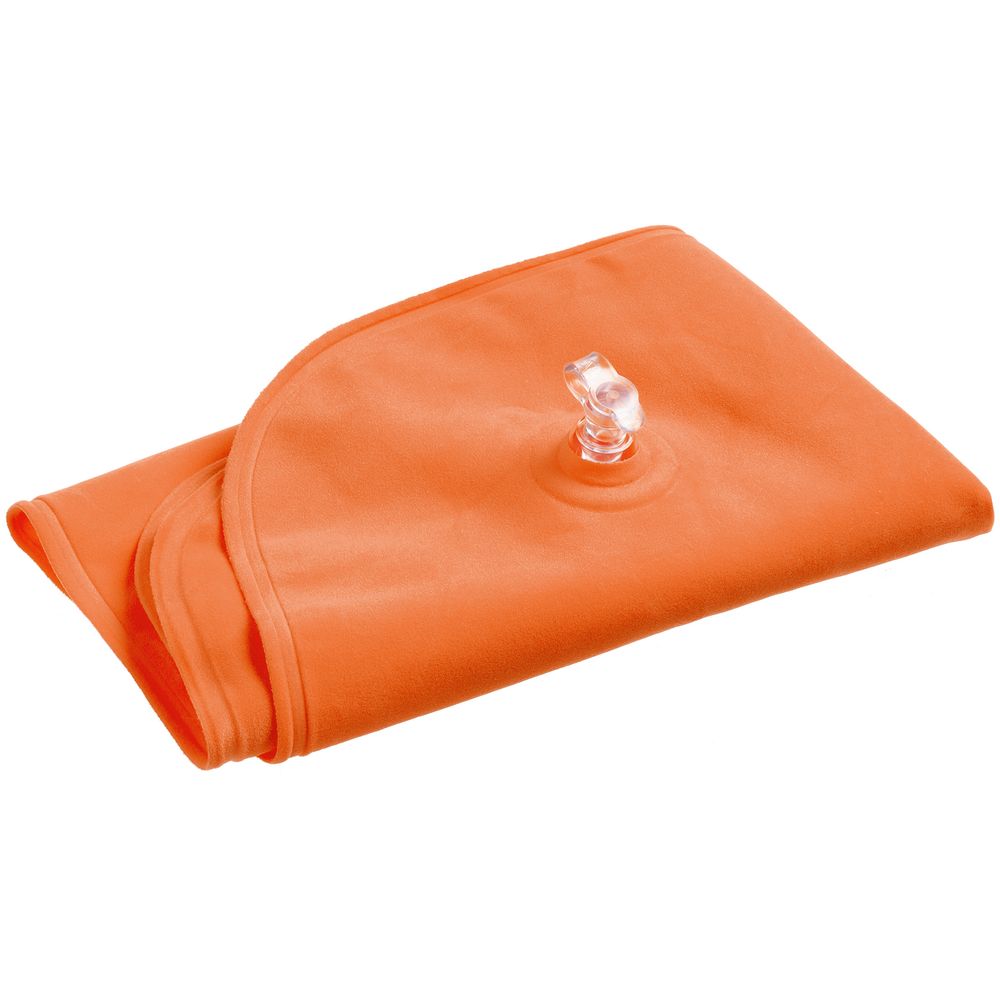 Надувная подушка под шею в чехле Sleep, оранжевая с логотипом компании - отличный способ заявить вашу корпоративную идентичность.