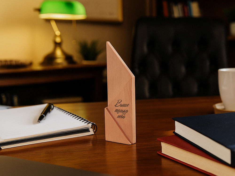 Необычная наградная стелла, символизирующая путь к вершинам. Выполнена из бука.