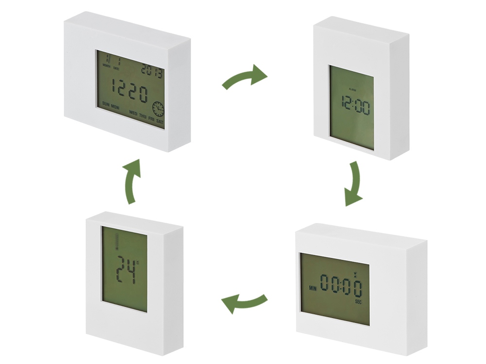Главная ->Корпоративные подарки и рекламные сувениры на складе -> Промо часы -> Часы настольные -> Настольные электронные мультифункциональные часы Rotatio с подсветкой, белый