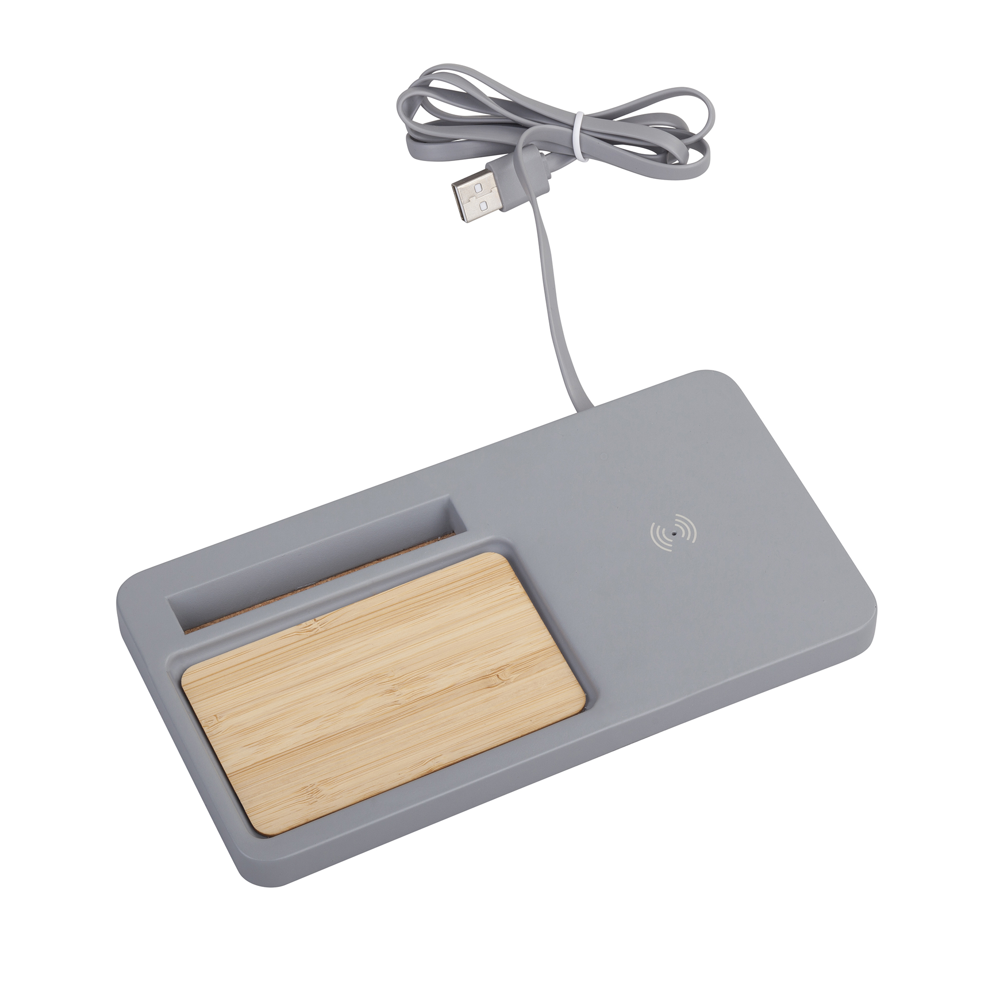 Настольный органайзер "Stonehenge" с беспроводным зарядным устройством, камень/бамбук
