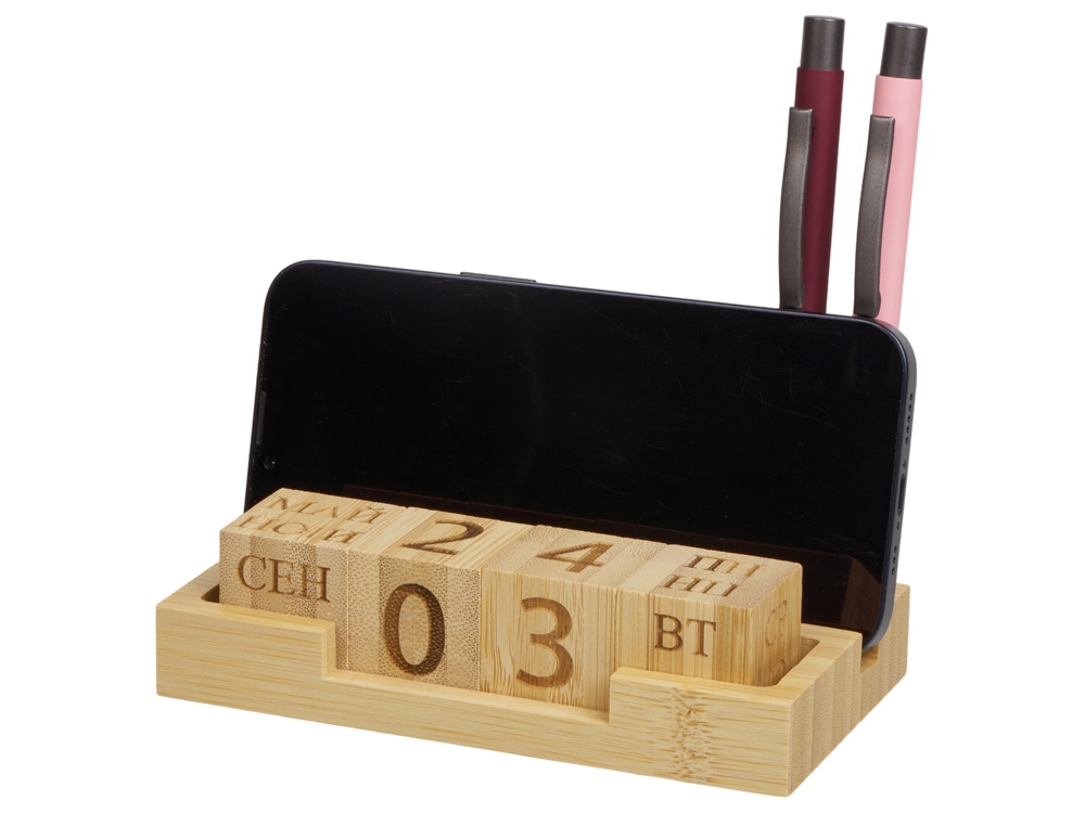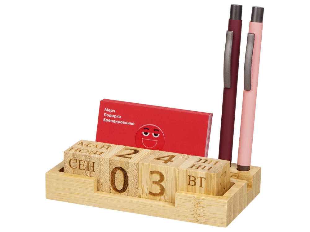 Компания «Эклектика BY» осуществляет нанесение логотипа на сувенирную продукцию: Настольный органайзер с вечным календарем и подставкой для телефона Akira, натуральный. Арт. 428846
