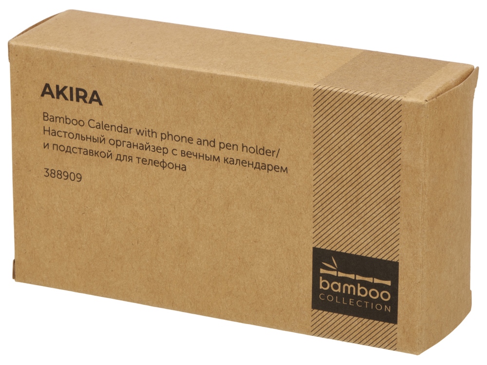 Настольный органайзер с вечным календарем и подставкой для телефона Akira, натуральный с логотипом компании - отличный способ заявить вашу корпоративную идентичность.