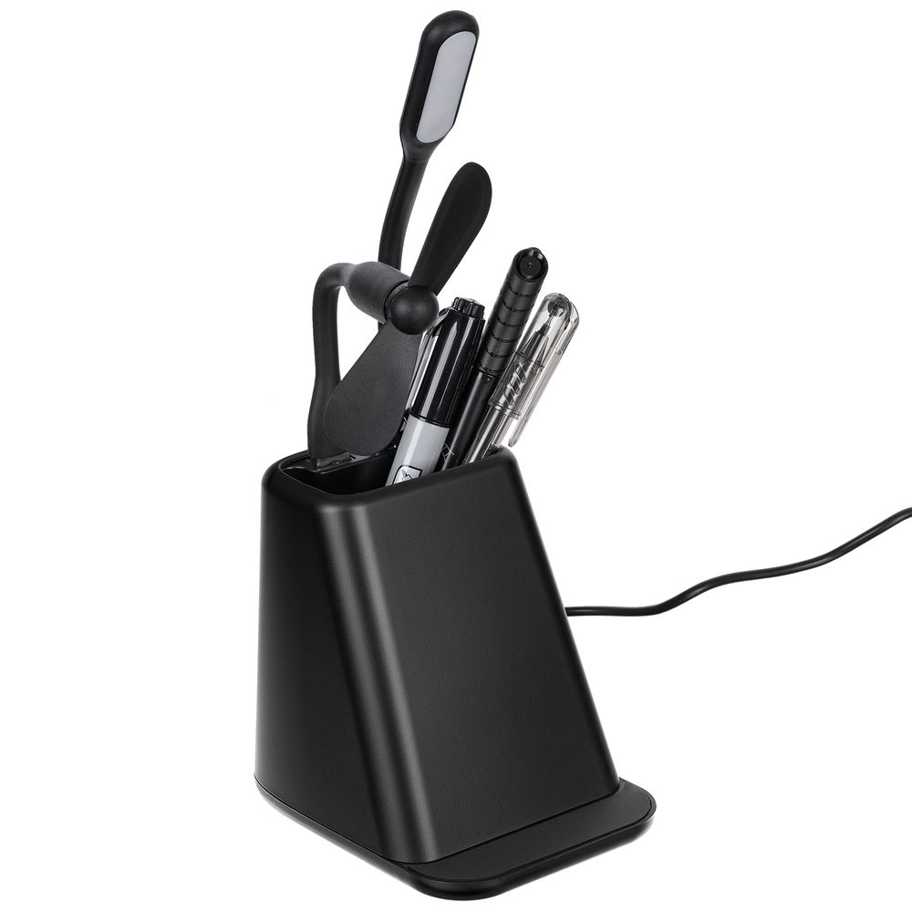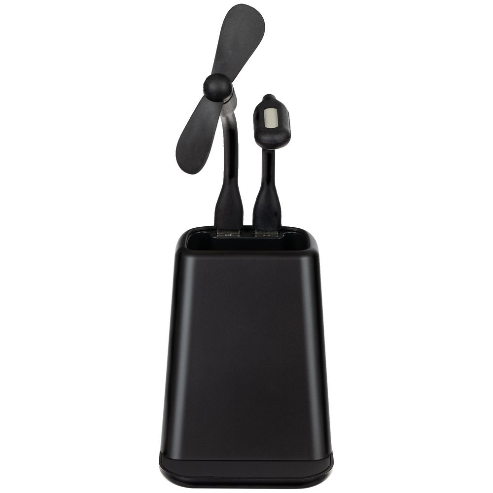 Настольный органайзер с зарядкой, лампой, вентилятором и подсветкой логотипа powerTower, черный