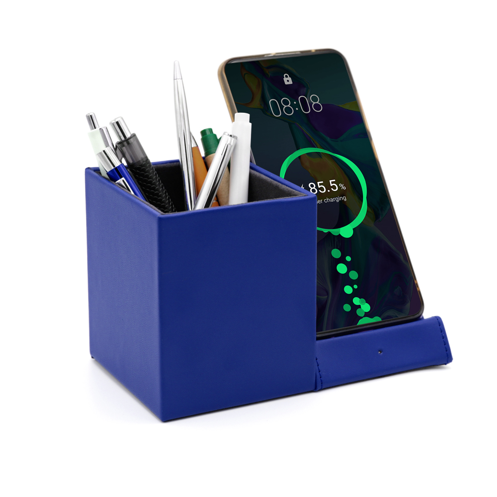 Главная ->Корпоративные подарки и рекламные сувениры на складе -> Товары для офиса и бизнеса -> Настольные органайзеры и подставки для ручек -> Настольный органайзер Elegans c беспроводной зарядкой, синий