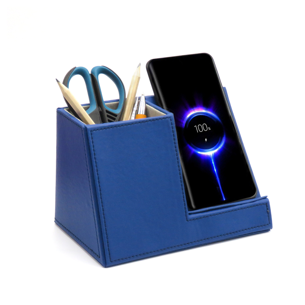 Компания «Эклектика BY» осуществляет нанесение логотипа на сувенирную продукцию: Настольный органайзер Ron c беспроводной зарядкой, синий. Арт. 205264