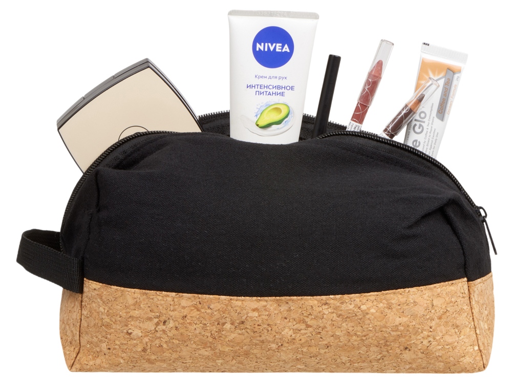 Несессер Corky хлопковый с пробковой вставкой, черный с логотипом компании - отличный способ заявить вашу корпоративную идентичность.