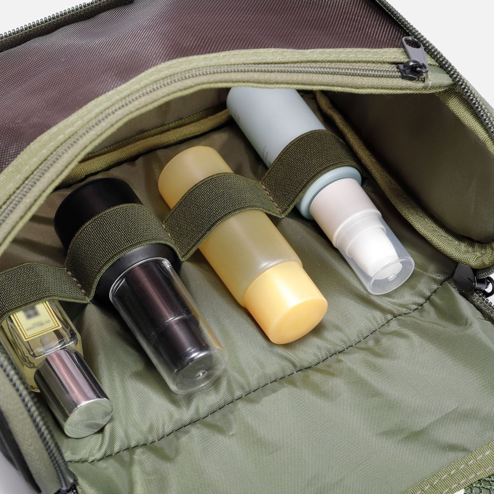 - Эластичные держатели для хранения туалетных принадлежностей и организации пространства в основном отделении