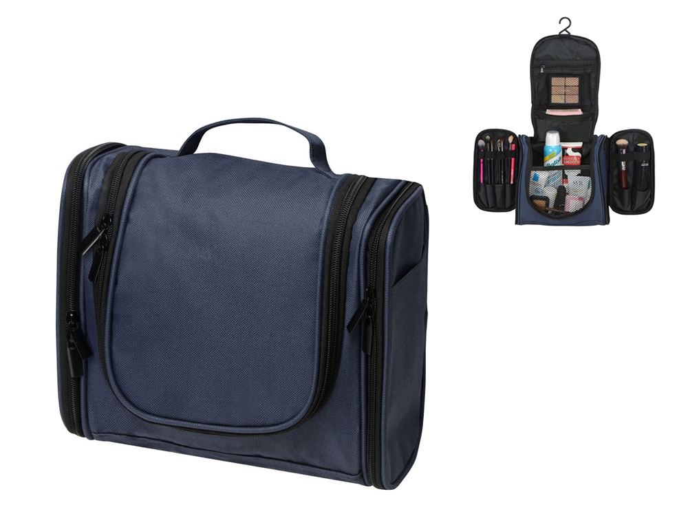 • Снабжен ручкой для удобства переноски и крючком, позволяющим подвесить несессер в ванной комнате гостиничного номера или любом другом месте