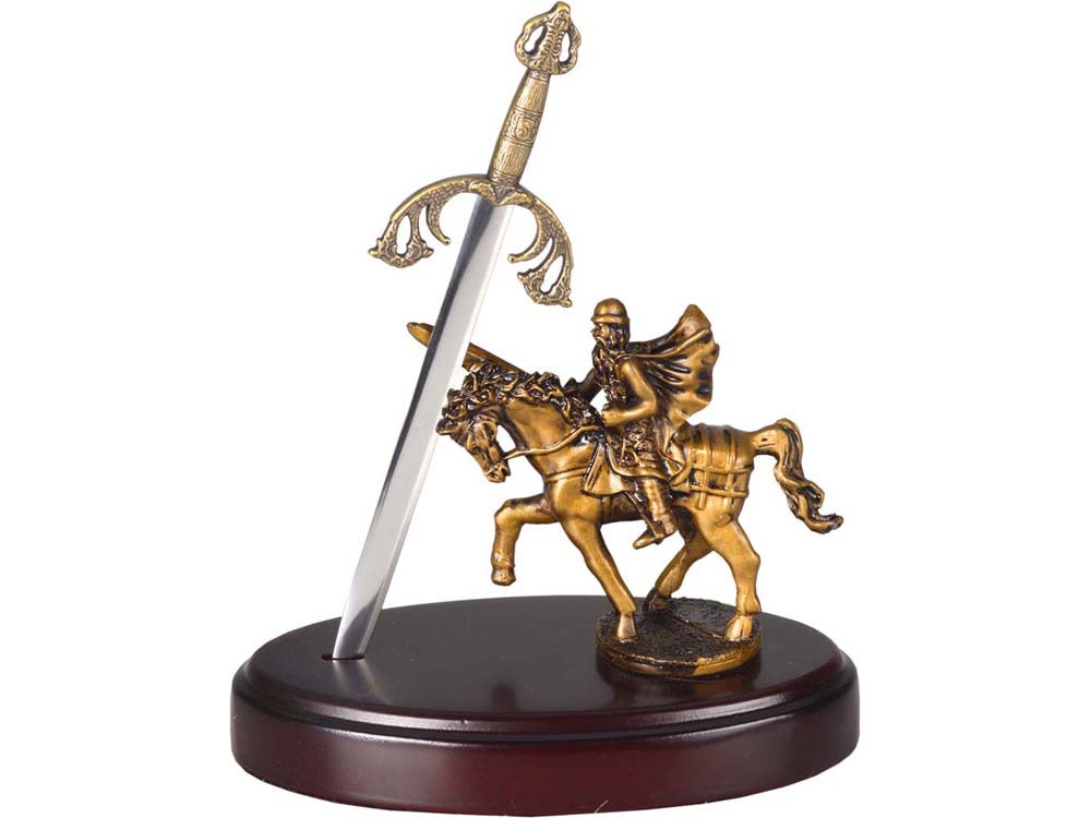Главная ->Корпоративные подарки и рекламные сувениры на складе -> Товары для офиса и бизнеса -> Настольные органайзеры и подставки для ручек -> Нож на подставке Сэр Ланселот, серебристый/золотистый/красное дерево