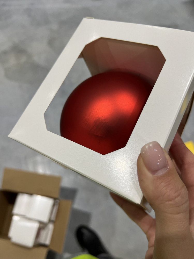 Компания «Эклектика BY» осуществляет нанесение логотипа на сувенирную продукцию: Оформительский шар Finery, 10 см, матовый красный. Арт. 313170