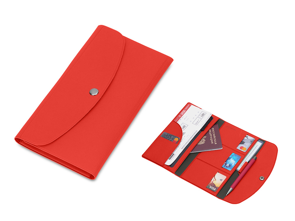 Органайзер для документов на кнопке с отделением для купюр и ручки, упаковка в индивидуальный пакет, красный/серый