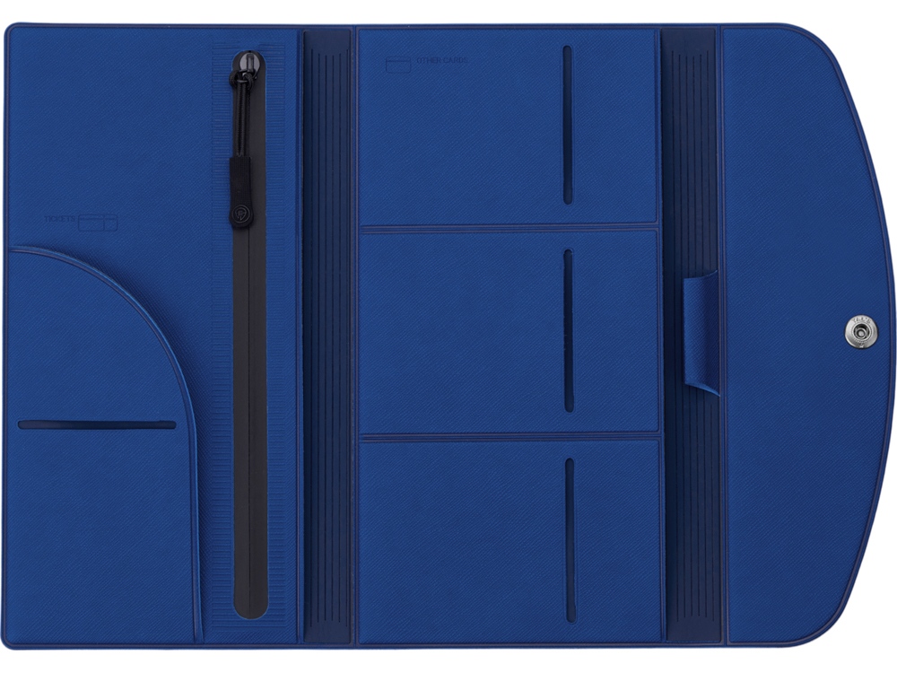Главная ->Корпоративные подарки и рекламные сувениры на складе -> Бизнес-подарки -> Бумажники -> Органайзер для документов на кнопке с отделением для купюр и ручки, упаковка в индивидуальный пакет, синий/темно-синий