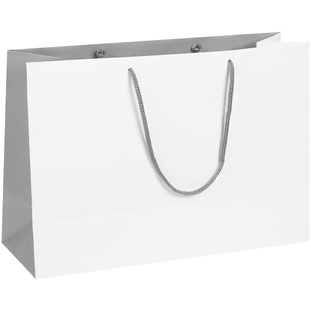 Пакет бумажный Bicolor, белый с серым с логотипом компании - отличный способ заявить вашу корпоративную идентичность.