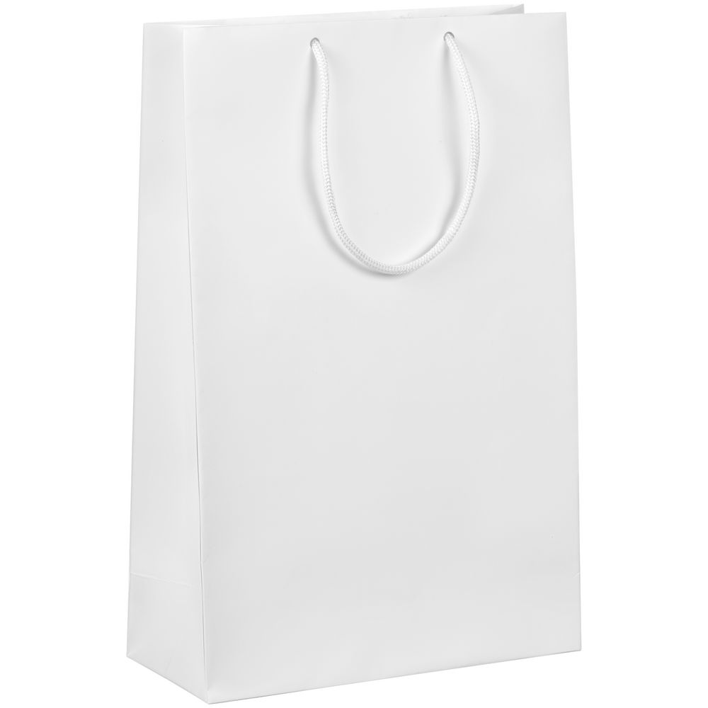 Пакет бумажный с ламинацией Lami L, белый с логотипом компании - отличный способ заявить вашу корпоративную идентичность.
