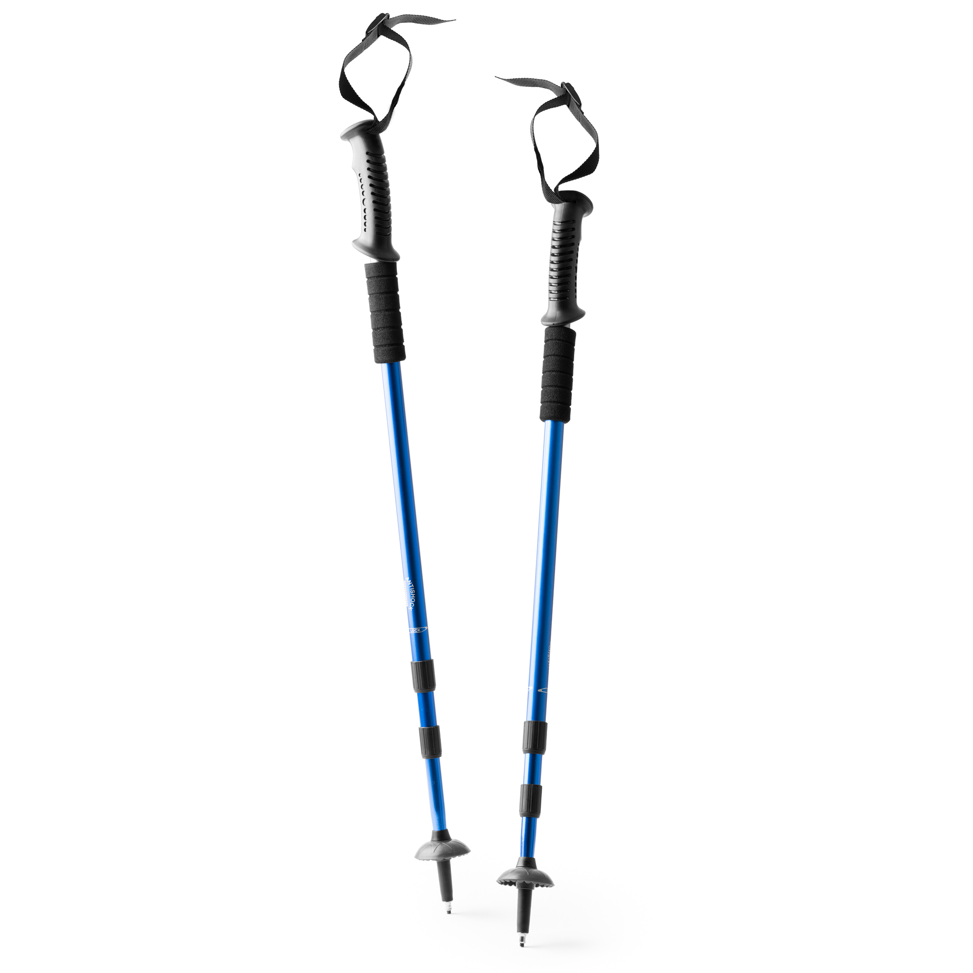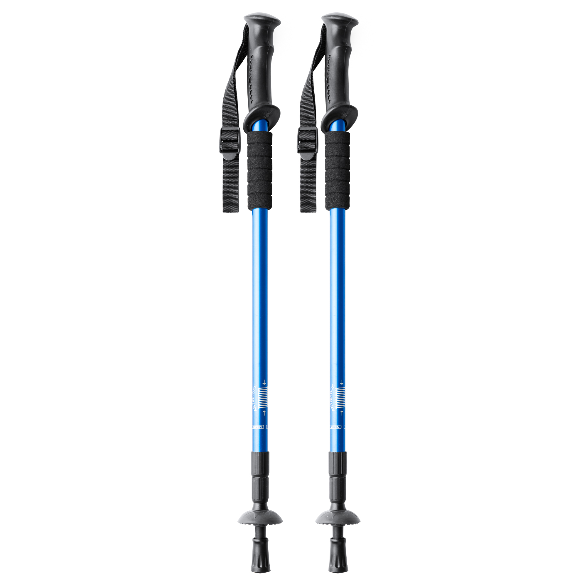 Складной набор треккинговых палок из алюминия с амортизацией. Эргономичная ручка и регулируемый ремень безопасности.