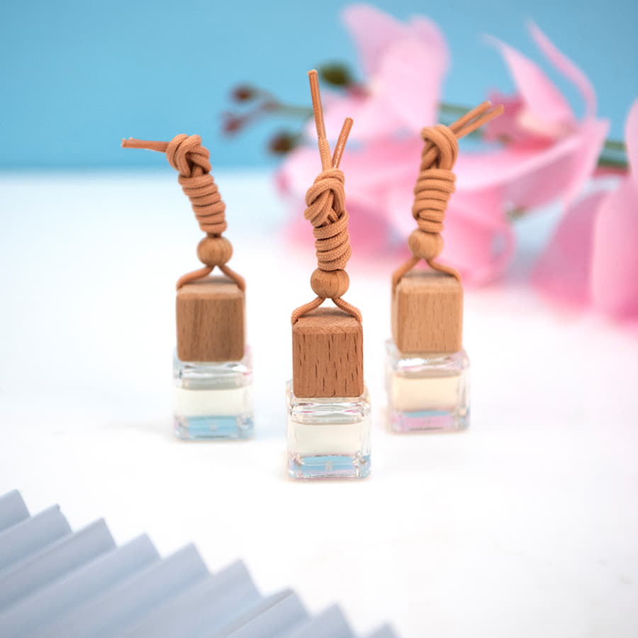 Парфюм для автомобиля и интерьера в удобном стеклянном флаконе с деревянной крышкой на шнурке.