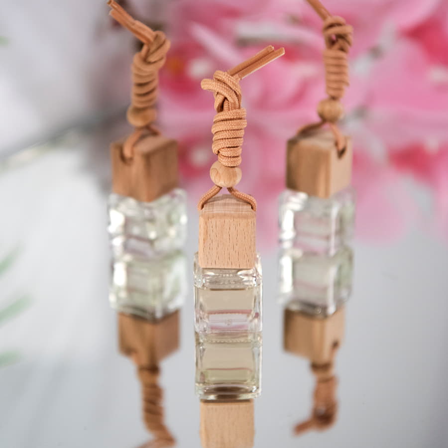 Парфюм для автомобиля и интерьера в удобном стеклянном флаконе с деревянной крышкой на шнурке.