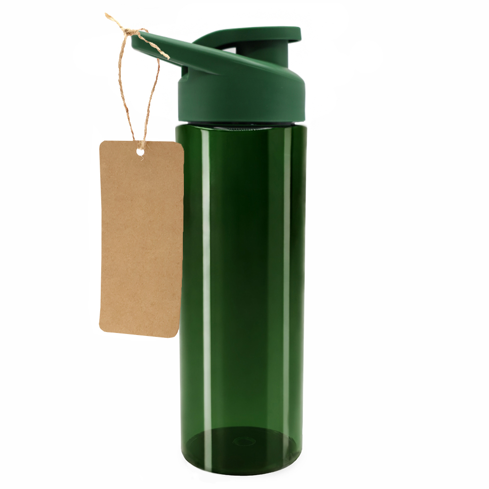 Пластиковая бутылка Ronny To Go с биркой, тёмно-зелёная с логотипом компании - отличный способ заявить вашу корпоративную идентичность.