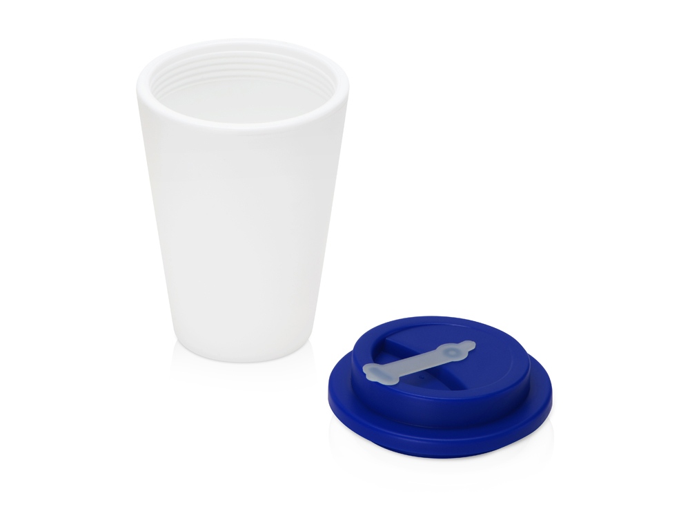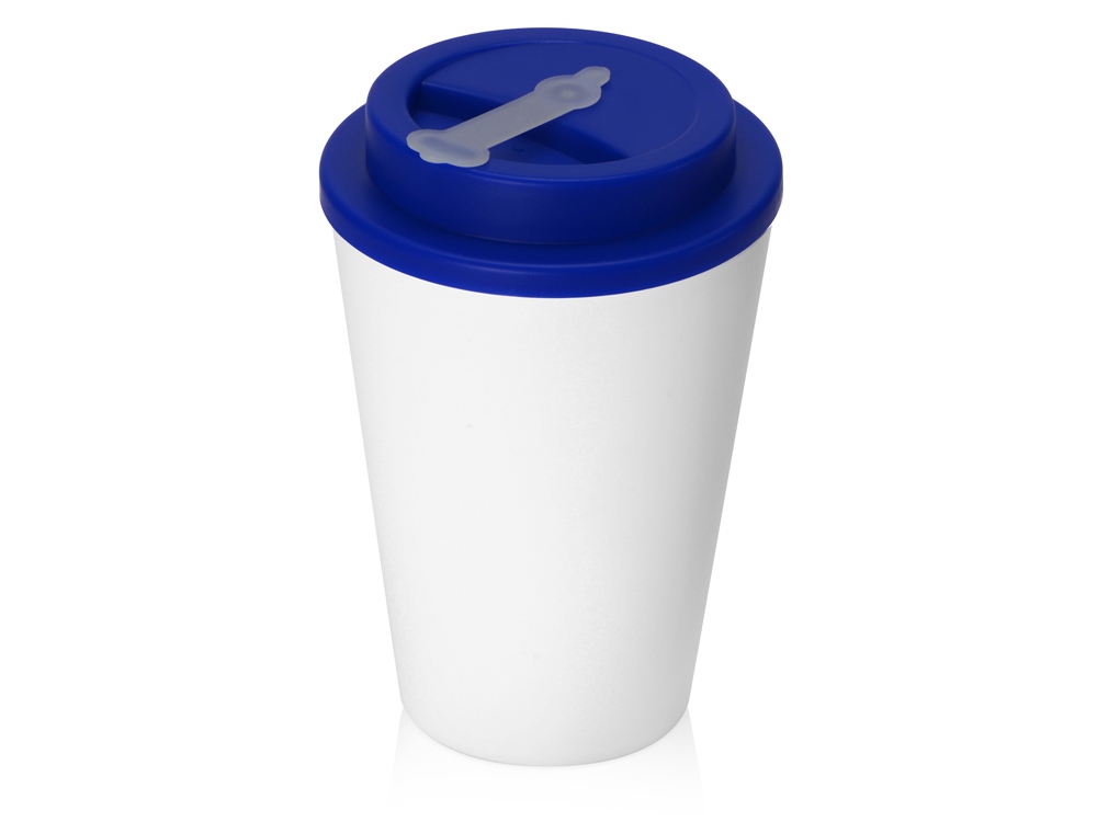 Пластиковый стакан Take away с двойными стенками и крышкой с силиконовым клапаном, 350 мл, белый/темно-синий