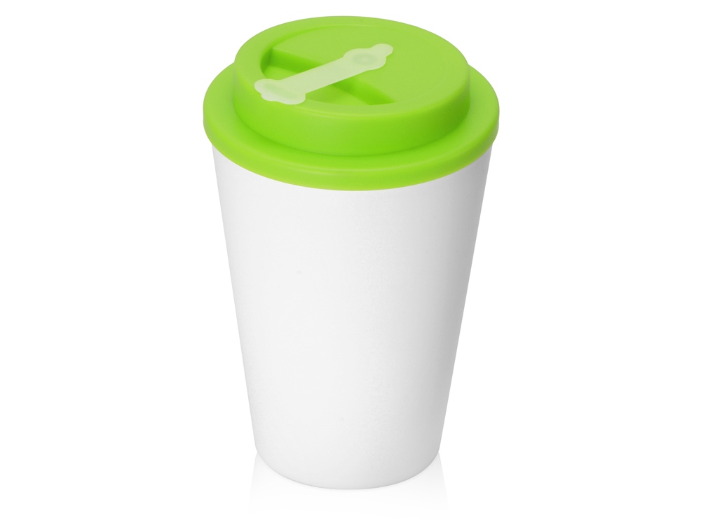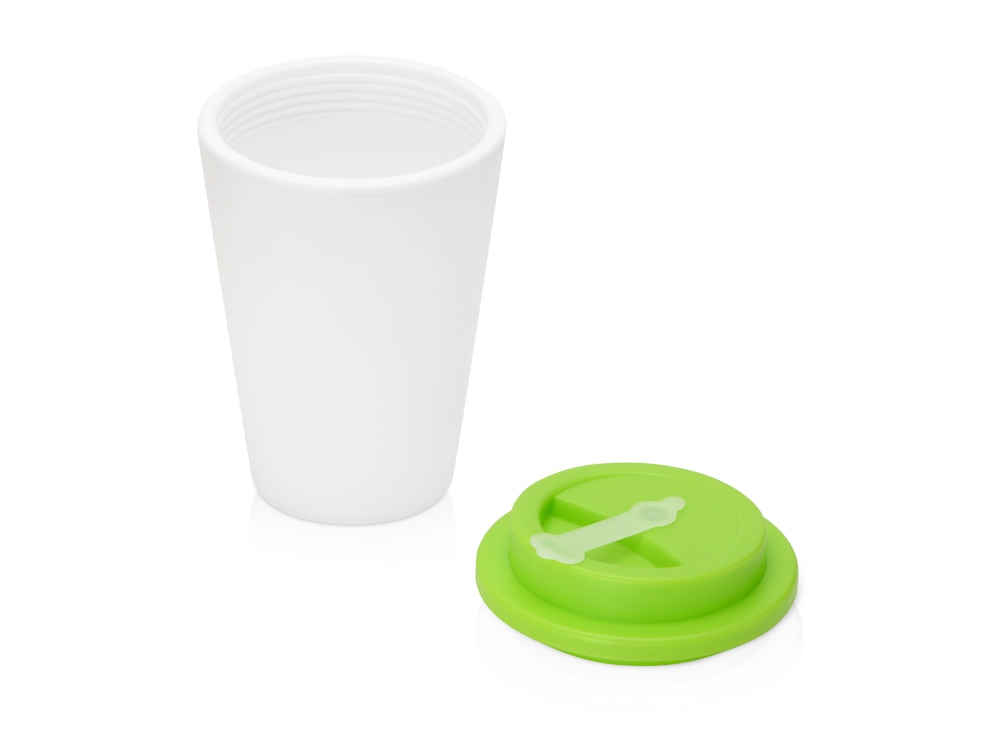 Пластиковый стакан Take away с двойными стенками и крышкой с силиконовым клапаном, 350 мл, белый/зел. Яблоко