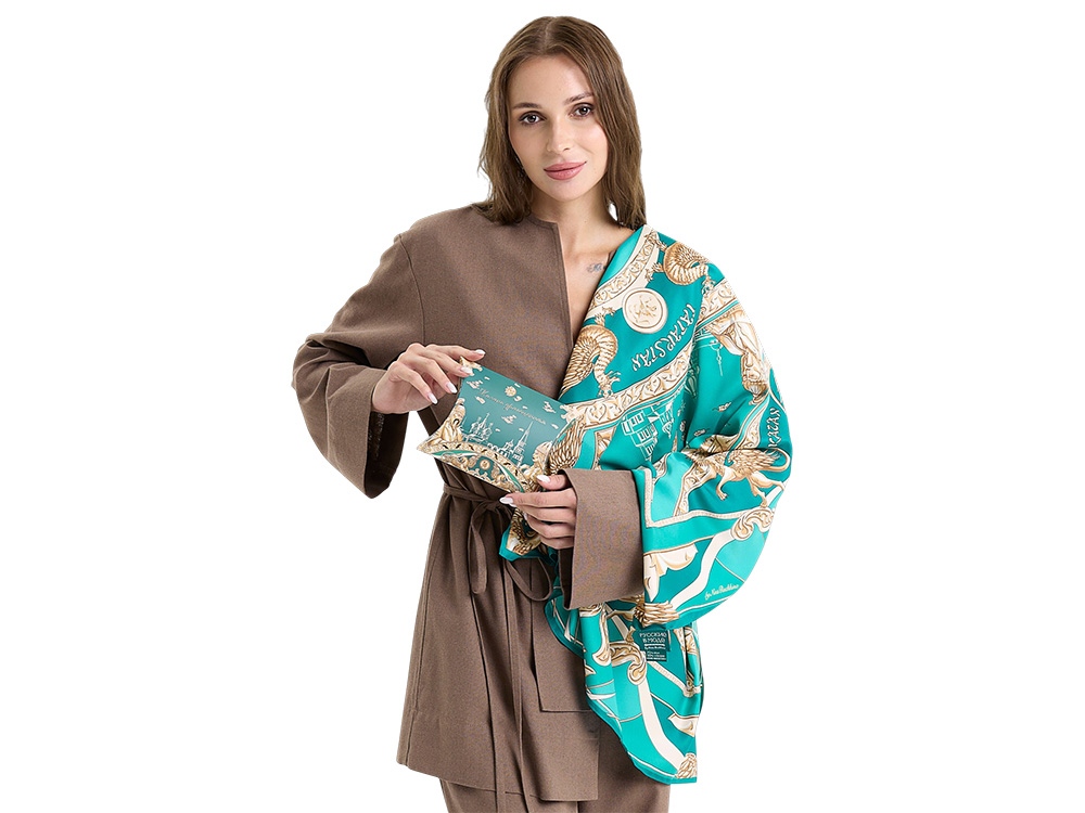 Компания «Эклектика BY» осуществляет нанесение логотипа на сувенирную продукцию: Платок Казань Драгоценная изумрудный. Арт. 462319