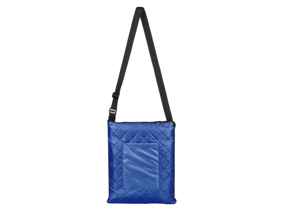 Двухсторонний плед с водоотталкивающим покрытием с одной стороны и мягким флисом с другой. Складывается в сумку на плечо и фиксируется с помощью молнии. В собранном виде имеет регулируемый по длине ремень для переноски и наружный карман для мелочей.