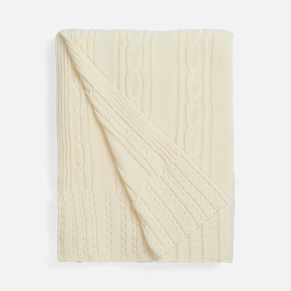 Тонкое переплетение вертикальных кос-жгутов создает благородный стиль, где простота линий встречается с изысканной рельефной текстурой. Плед из мягкого акрила сохраняет тепло, оставаясь удивительно легким и воздушным.