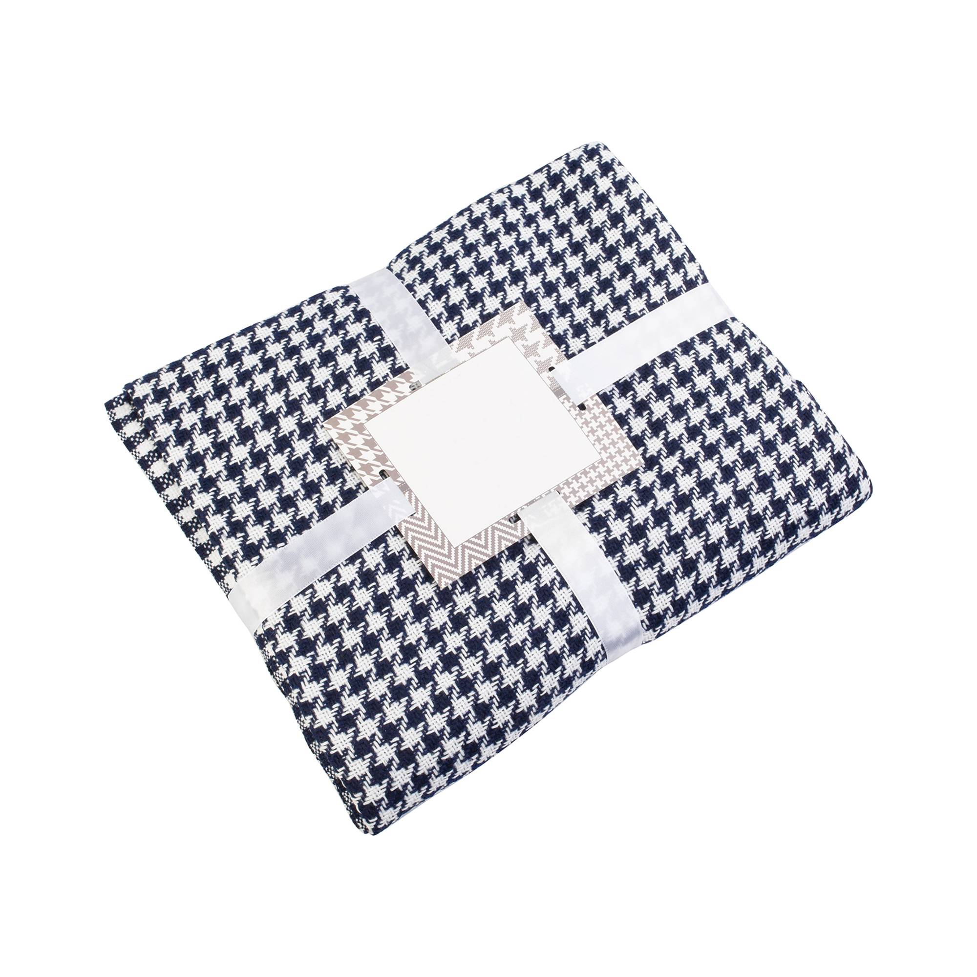 Бахрома по короткой стороне. Плед перевязан атласной лентой с картонной биркой в центре. Размер в собранном виде 32 х 38 см.