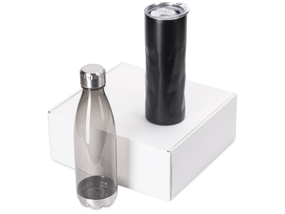 Подарочный набор с термокружкой и бутылкой Water cross, черный с логотипом компании - отличный способ заявить вашу корпоративную идентичность.