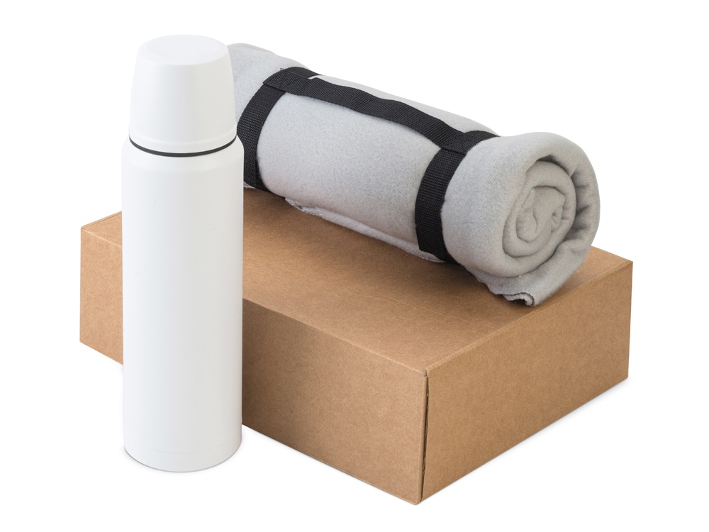 Подарочный набор с термосом и пледом Serenity, белый/серый