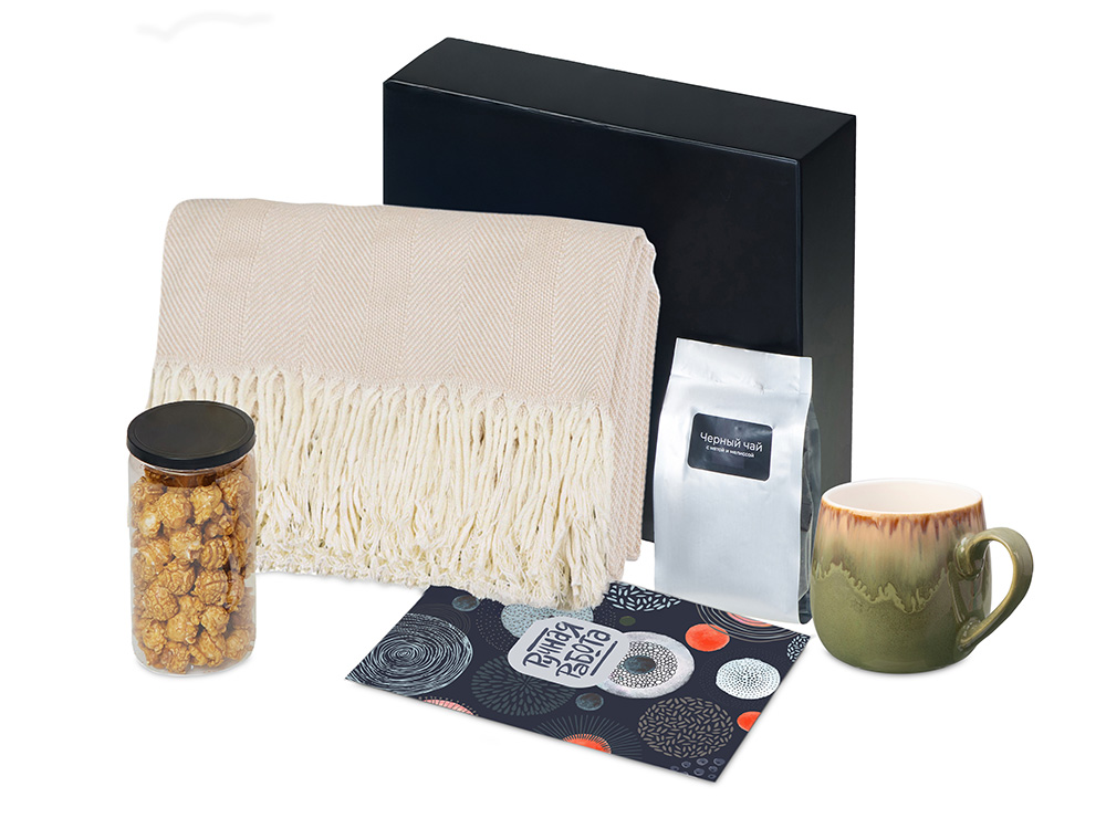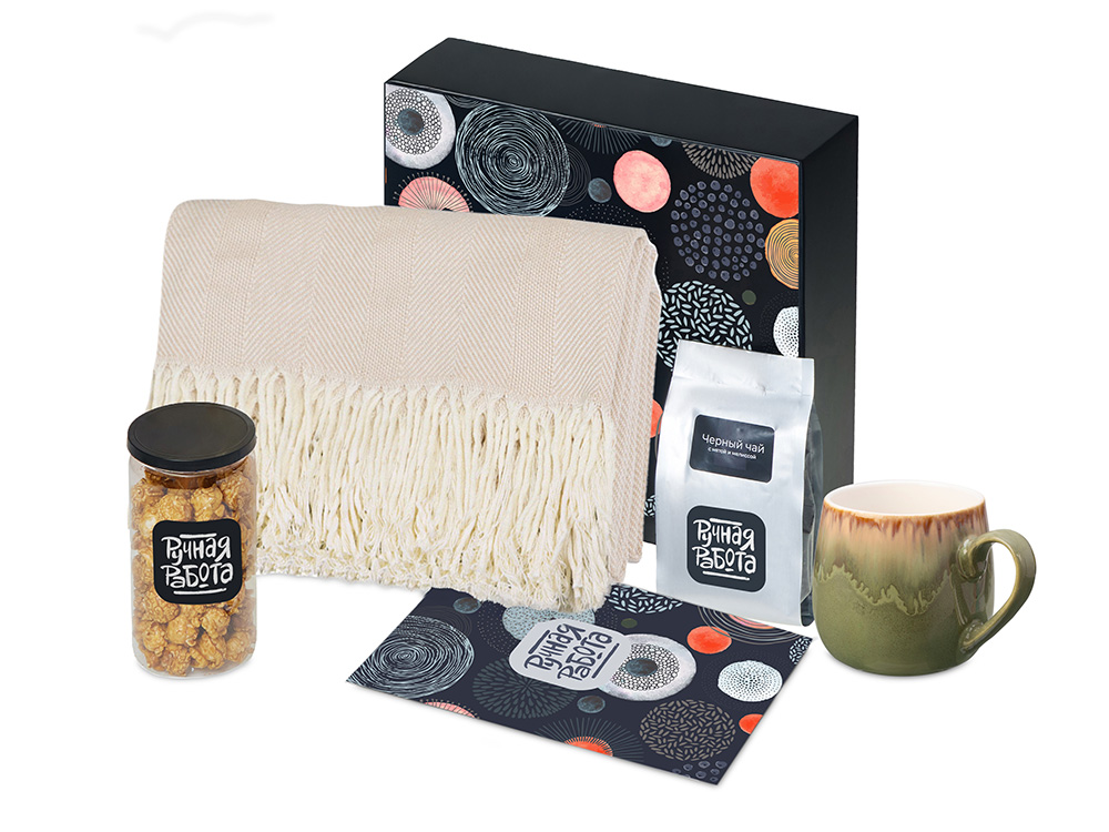 Подарочный набор Re:y. Haven с пледом, кружкой и чаем с логотипом компании - отличный способ заявить вашу корпоративную идентичность.