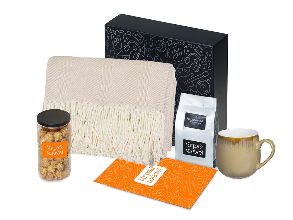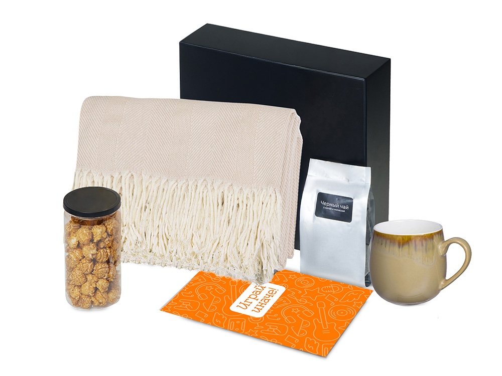 Подарочный набор Re:y. Haven с пледом, кружкой и чаем с логотипом компании - отличный способ заявить вашу корпоративную идентичность.