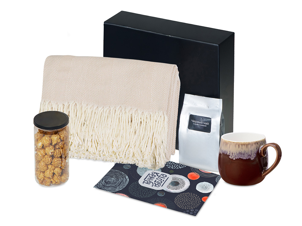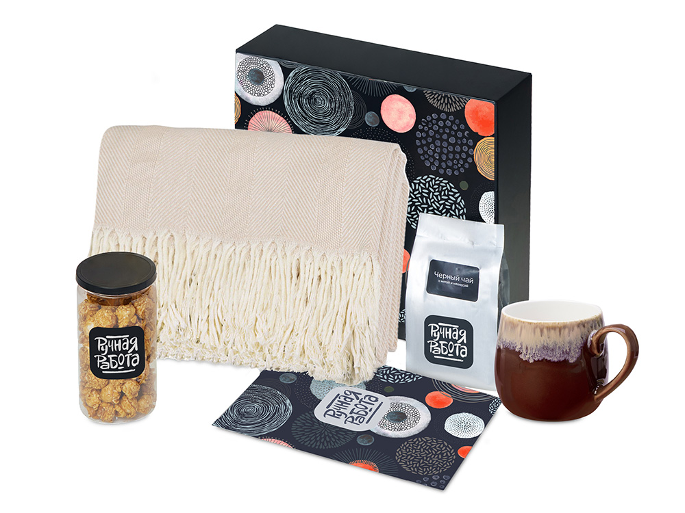 Подарочный набор Re:y. Haven с пледом, кружкой и чаем с логотипом компании - отличный способ заявить вашу корпоративную идентичность.