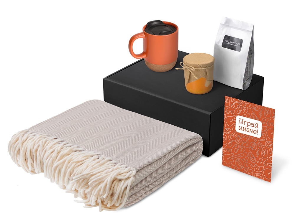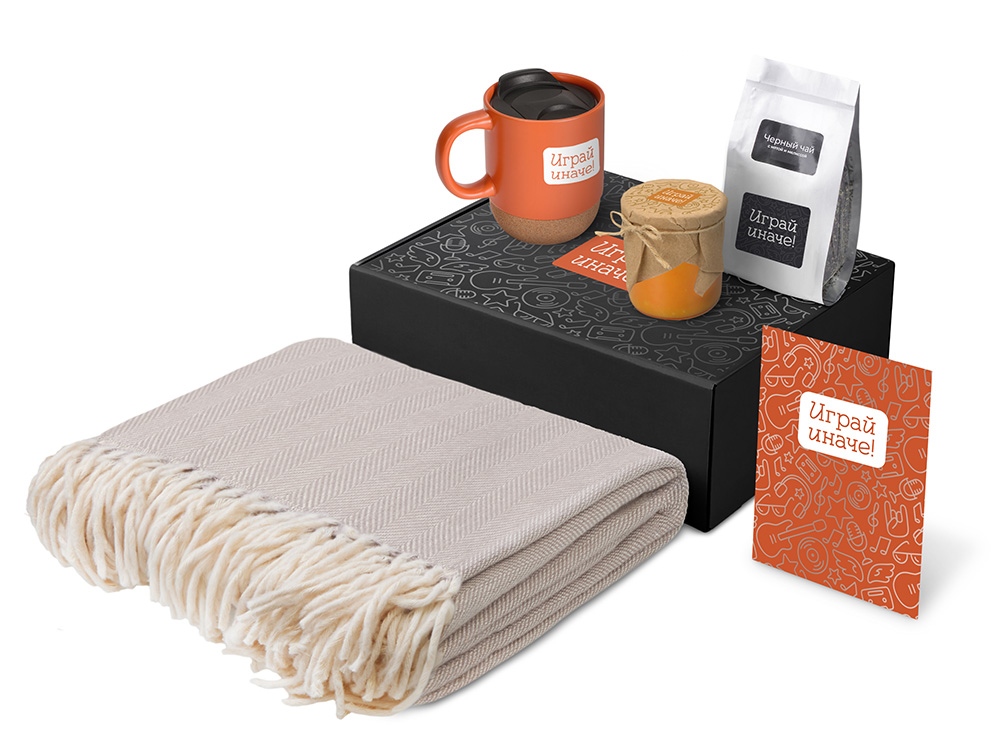 Подарочный набор Re:y. Nest с пледом, кружкой и вареньем с логотипом компании - отличный способ заявить вашу корпоративную идентичность.